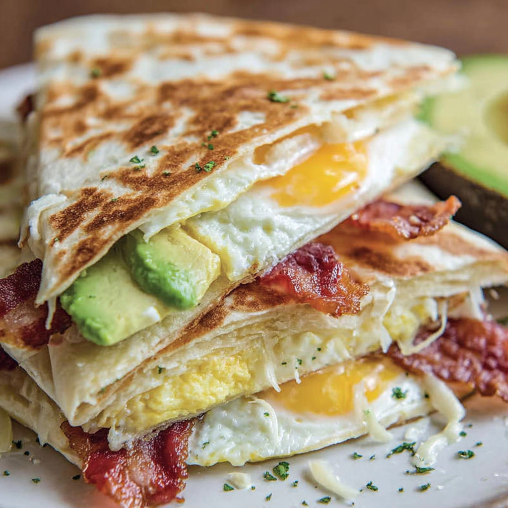 Crispy, cheesy, and ready in minutes, this viral tortilla fold layers bacon, egg, avocado, and melty cheese into a perfectly portable triangle.